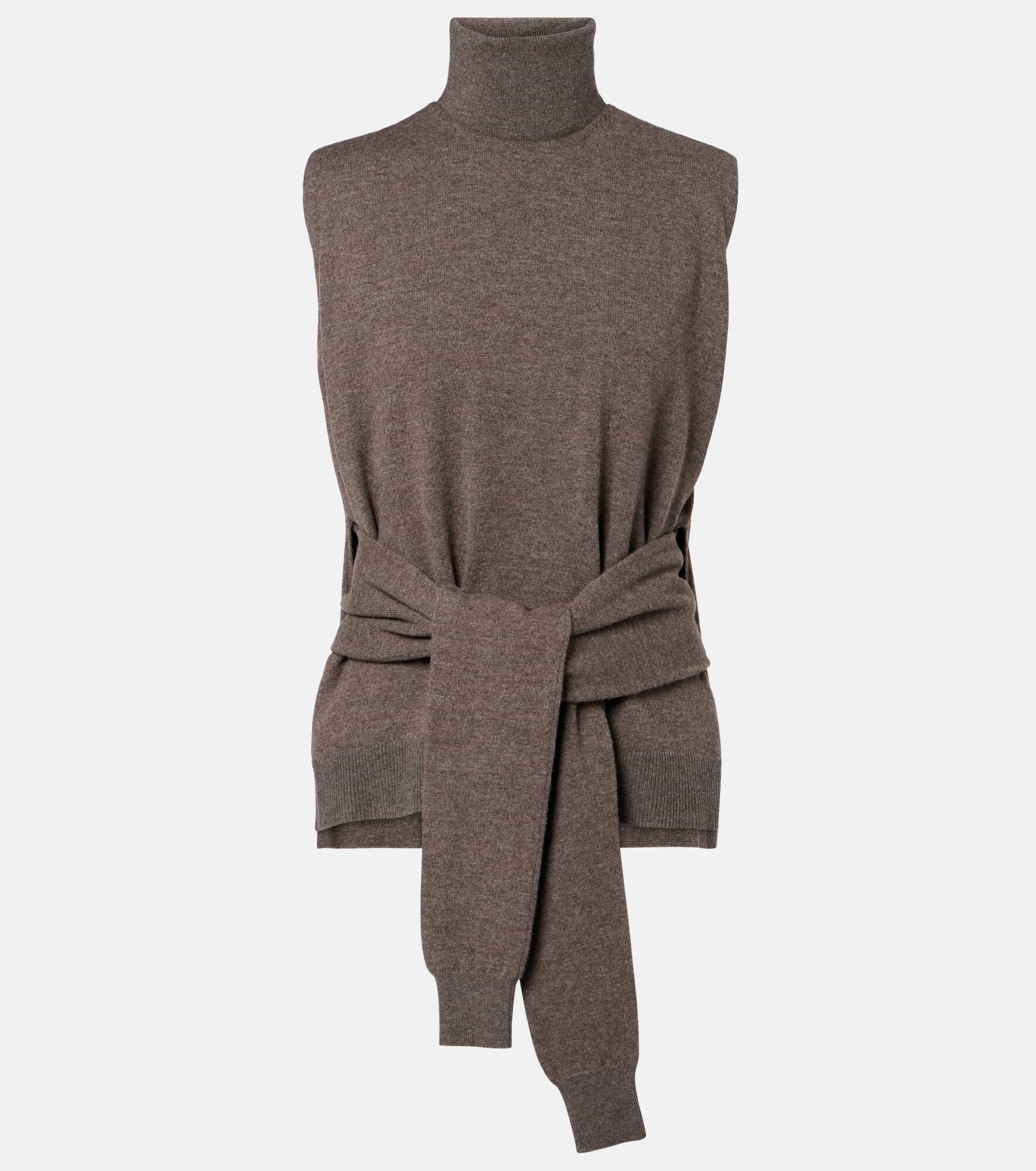 If you want to master layering, opt for this knitted top from Rohe. Spun from a high-quality blend of wool and cashmere, this piece features a fitted turtleneck underlayer with tie-sleeve detailing and a loose crewneck overlay with side splits. Product Details - Material: 87% wool (merino wool), 10% cashmere, 3% elastane - Care instructions: dry clean - Made in Italy - Designer color name: Mud Melange - Item color: brown - Collar: turtleneck - Hem: ribbed - Item number: P01073369 Size & Fit - True to size - Loose fit, comes with belt - Stretchy fabric - Falls below the hip - The model seen in the picture is 178cm-5'10" and wearing a size FR 34