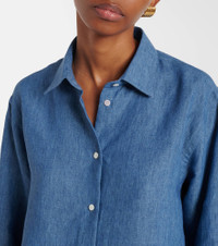 Rohe favors a multifaceted approach to design, infusing collections with elements of Dutch architecture, art, and nature. This shirt is made from linen to a slightly oversized silhouette. Product Details - Material: 100% linen - Care instructions: machine wash at 30 degrees - Made in Portugal - Color: blue - Designer color name: Ocean Blue - Item color: blue - Closure: buttoned placket - Collar: classic (Straight point) - Cuff: three buttons - Hem: rounded - Item number: P01139973 Size & Fit - True to size - Designed for a loose fit - Non-stretchy fabric - Falls below the hip - The model seen in the picture is 178cm-5'10" and wearing a size FR 34