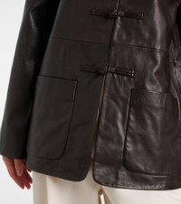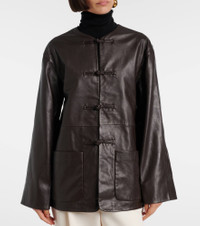 Rohe interprets the brand-signature "Marie" jacket in full leather construction. Decorated with the toggle clasps inspired by pankou closures, the piece has patch pockets and a loose fit. Product Details - Material: 100% sheep leather - Care instructions: specialist clean - Made in India - Designer color name: Mahogany - Item color: brown - Contains non-textile parts of animal origin - Lining: 100% viscose - Pockets: patch pockets - Closure: toggle fastenings - Item number: P01103199 Size & Fit - True to size - Designed for a loose fit - Non-stretchy fabric - Falls below the hip - The model seen in the picture is 178cm-5'10" and wearing a size FR 34