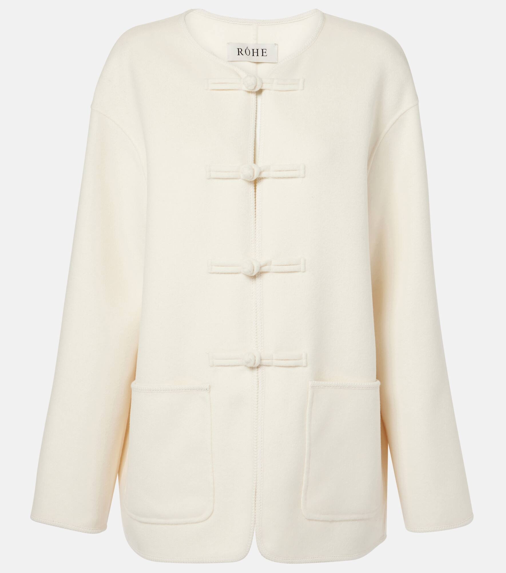 Product Details - Material: 100% wool - Care instructions: specialist clean - Made in China - Designer color name: Off White - Closure: toggle fastening - Pockets: patch pockets - Item number: P01020097 Size & Fit - True to size - Dropped shoulders - Straight fit - Non-stretchy fabric - Falls below the hip - The model seen in the picture is 178cm-5'10" and wearing a size FR 36