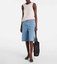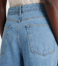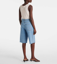 Look to Rohe for trend-defying pieces, designed in the heart of Amsterdam. These denim shorts have an oversized silhouette and are complete with unfinished hems that fall below the knees. Product Details - Material: 100% cotton - Care instructions: machine wash at 30 degrees - Made in Tunisia - Designer color name: Denim Blue - Item color: blue - Belt loops - Closure: zip and button fastening - Pockets: five pockets - Item number: P01062412 Size & Fit - True to size - Non-stretchy fabric - Wide-leg - Mid-rise - The model seen in the picture is 178cm-5'10" and wearing a size FR 34