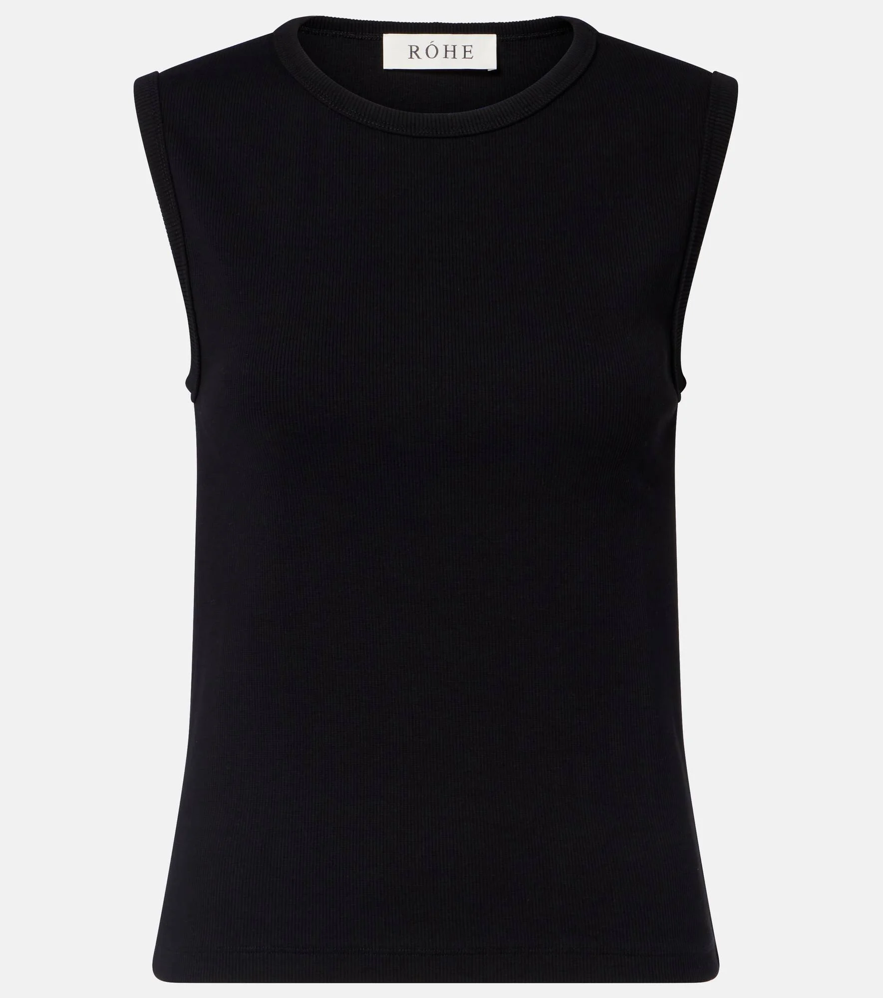 Rohe sets out to create minimalist staples that defy trends and seasons. Ribbed-knit from a soft cotton-blend, this tank top is shaped into a simple, sleeveless silhouette. Product Details - Material: 95% cotton, 5% elastane - Care instructions: machine wash at 30 degrees - Made in Portugal - Color: black - Designer color name: Black - Item color: black - Hem: straight - Item number: P01139999 Size & Fit - True to size - Straight fit - Stretchy fabric - Falls to the hip - The model seen in the picture is 178cm-5'10" and wearing a size FR 34