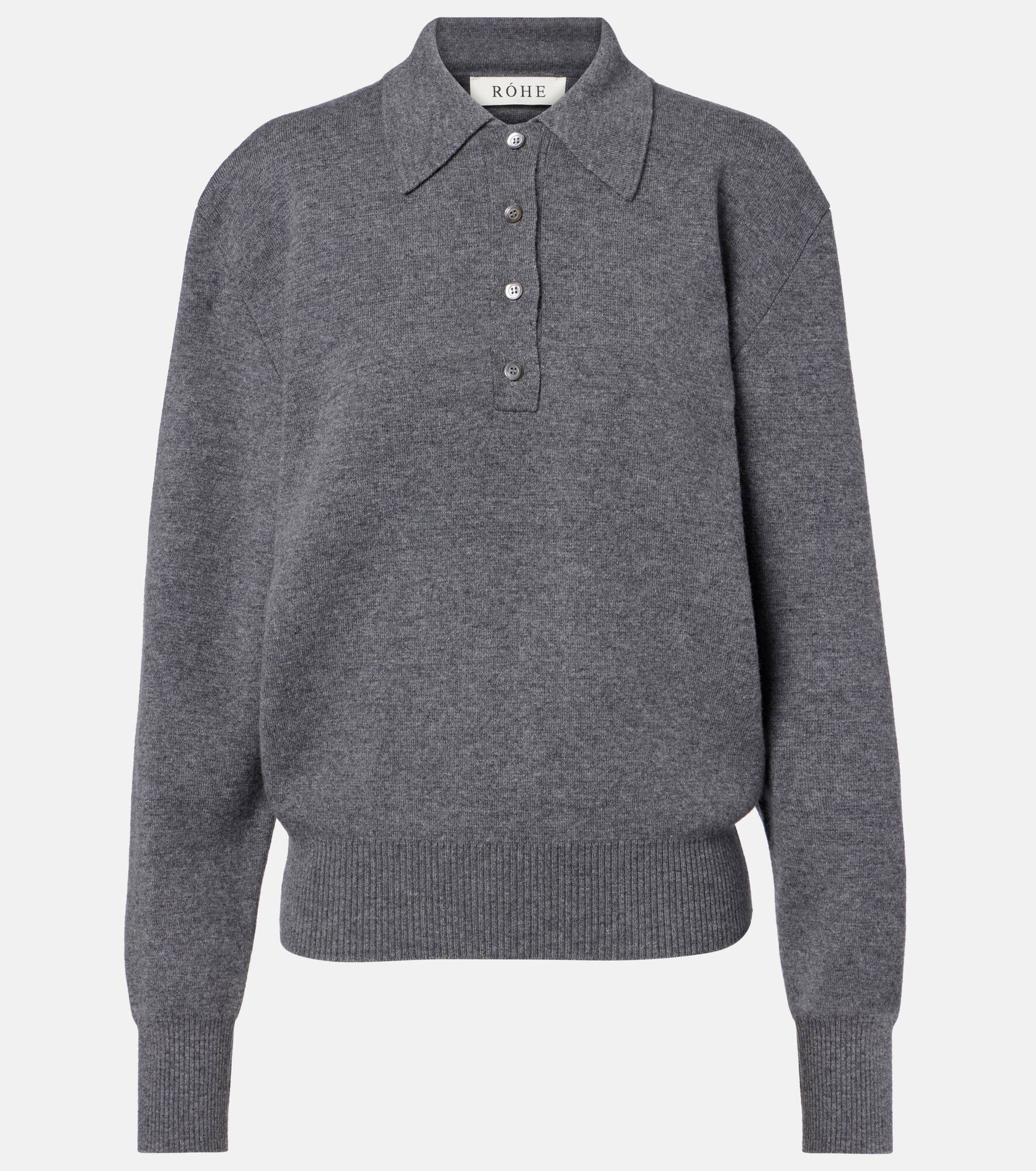 Look to Rohe for trend-defying pieces, designed in the heart of Amsterdam, like this polo sweater. Spun from a soft blend of wool and cashmere, the design comes in a classic gray hue and relaxed silhouette. Product Details - Material: 90% wool, 10% cashmere - Care instructions: dry clean - Made in Italy - Designer color name: Mid Grey Melange - Item color: gray - Collar: polo collar - Hem: ribbed - Item number: P01073393 Size & Fit - True to size - Dropped shoulders - Designed for a loose fit - Stretchy fabric - Falls to the hip - The model seen in the picture is 178cm-5'10" and wearing a size FR 34