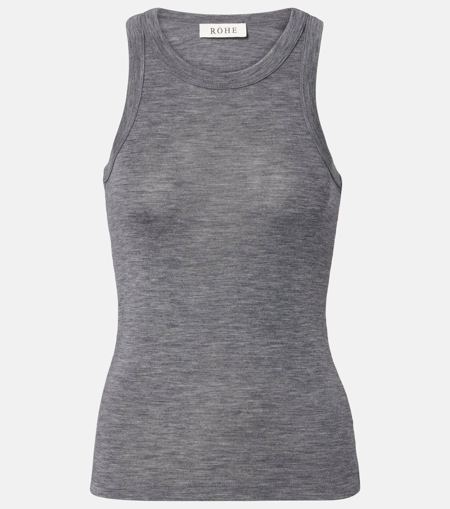 Crafted from ultra-soft wool jersey, this racerback tank top from Rohe is sure to become your new daily essential. The refined design features a figure-sculpting fit with a high, round neckline for a sleek finish. Product Details - Material: 100% wool (merino wool) - Care instructions: hand wash - Made in Portugal - Designer color name: Mid Grey Melange - Item color: gray - Item number: P01073405 Size & Fit - True to size - Fitted - Falls to the hip - The model seen in the picture is 178cm-5'10" and wearing a size FR 34