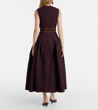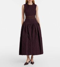 Elevate everyday dressing with the Aya midi dress from Roksanda. This elegant style is cut from textured cloque to a sleeveless, voluminous silhouette. Product Details - Material: 76% polyester, 24% polyamide - Care instructions: specialist clean - Made in China - Designer color name: Wine/Zinnia - Item color: burgundy, yellow - Lining: 73% acetate, 27% silk - Closure: zipped back - Item number: P01061122 Size & Fit - Fits large to size - we recommend trying one size smaller - Cinched waist - Non-stretchy fabric - The model seen in the picture is 178cm-5'10" and wearing a size UK 6
