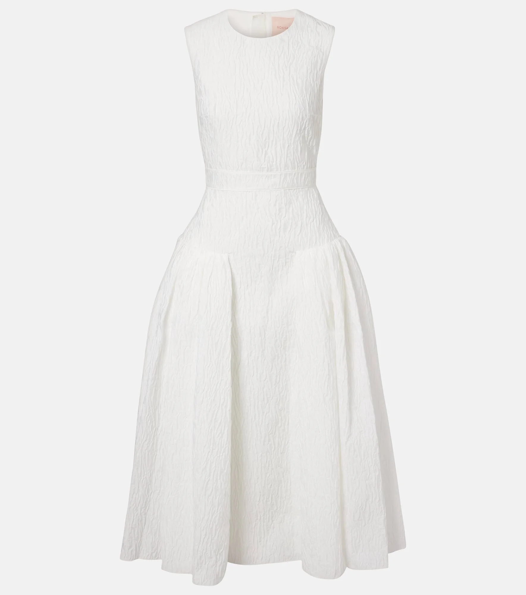 Roksanda Ilinčić’s background in architecture informs her brand’s distinctive approach to fashion design. The Aya midi dress is cut from textured cloque to a sleeveless, voluminous silhouette. Product Details - Material: 76% polyester, 24% polyamide - Care instructions: dry clean - Made in China - Color: white - Designer color name: Ivory - Item color: white - Lining: 73% acetate, 27% silk - Closure: concealed zipped back - Item number: P01110604 Size & Fit - True to size - Cinched waist - Non-stretchy fabric - The model seen in the picture is 178cm-5'10" and wearing a size UK 8