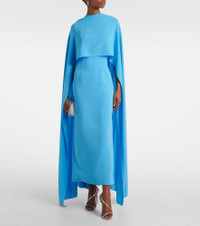 Elina Cape-Detailed Bonded Crepe Maxi Dress blue