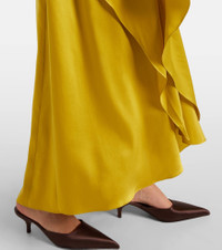 The Hiba gown showcases Roksanda's background in architecture with its harmonious asymmetries. Crafted from yellow silk chartreuse, this elegant style is shaped into a caped silhouette that softly drapes to the floor. Product Details - Material: 100% silk - Care instructions: specialist clean - Made in China - Designer color name: Zinnia - Item color: green - Lining: 73% acetate, 27% silk - Closure: hook fastening, self-ties - Item number: P01061123 Size & Fit - True to size - Cinched waist - Loose outer layer - Non-stretchy fabric - The model seen in the picture is 178cm-5'10" and wearing a size UK 8