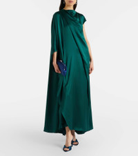 Roksanda Ilinčić’s background in architecture informs her brand’s distinctive approach to fashion design. Crafted from pure silk satin, the Hiba maxi dress features a draped neckline and asymmetric silhouette with a cap sleeve on one side, and caped sleeve on the other. Product Details - Material: 100% silk - Care instructions: dry clean - Made in China - Color: green - Designer color name: Forest Green - Item color: green - Lining: 73% acetate, 27% silk - Closure: hook-fastening back - Item number: P01123100 Size & Fit - True to size - For a closer fit, we recommend taking one size down - Loose fit, comes with belt - Non-stretchy fabric - The model seen in the picture is 178cm-5'10" and wearing a size UK 8