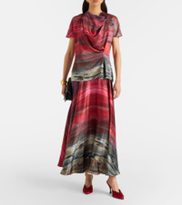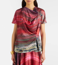 Printed draped silk satin top