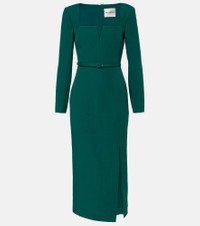 Roland Mouret has made a name for itself through a black tie-ready aesthetic and an expert use of draping. Made from wool and silk, this midi dress is a belted piece with removable shoulder pads. Product Details - Material: 68% wool, 32% silk - Care instructions: dry clean - Made in China - Designer color name: Green - Item color: green - Lining: 100% polyester - Cuff: zipped - Attached belt - Side slits - Boning - Closure: concealed zipper, zipped back, hook-fastening back - Item number: P01080502 Size & Fit - Fits small to size - we recommend trying one size larger - Shoulder pad inserts - Fitted - Non-stretchy fabric - The model seen in the picture is 178cm-5'10" and wearing a size UK 8