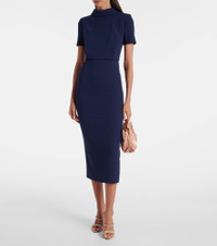 Roland Mouret has made its name through expertly crafted, timeless designs. This midi dress is crafted from cady with a high-neck collar. Product Details - Material: 60% acetate, 40% polyester - Care instructions: dry clean - Made in China - Designer color name: Navy - Item color: blue - Lining: 100% polyester - Closure: zipped back - Short vent - Item number: P01060421 Size & Fit - True to size - Shoulder pad inserts - Cinched waist - Slightly stretchy fabric - slit length 29,0cm-11.5" - The model seen in the picture is 178cm-5'10" and wearing a size UK 8