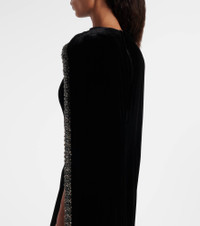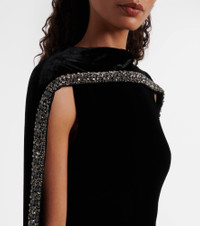 Made for grand entrances, this gown by Roland Mouret is crafted from velvet with a shimmering embellished detail at the front. The design is enhanced with a long cape and finished with a discreet closure. Product Details - Material: 79% viscose, 19% silk, 2% elastane - Care instructions: dry clean - Made in China - Designer color name: Black - Item color: black - Hardware color: silver - Lining: 100% polyester - Closure: concealed closure, hook fastening - Item number: P01104678 Size & Fit - True to size - Fitted - Loose outer layer - Non-stretchy fabric - The model seen in the picture is 178cm-5'10" and wearing a size UK 6