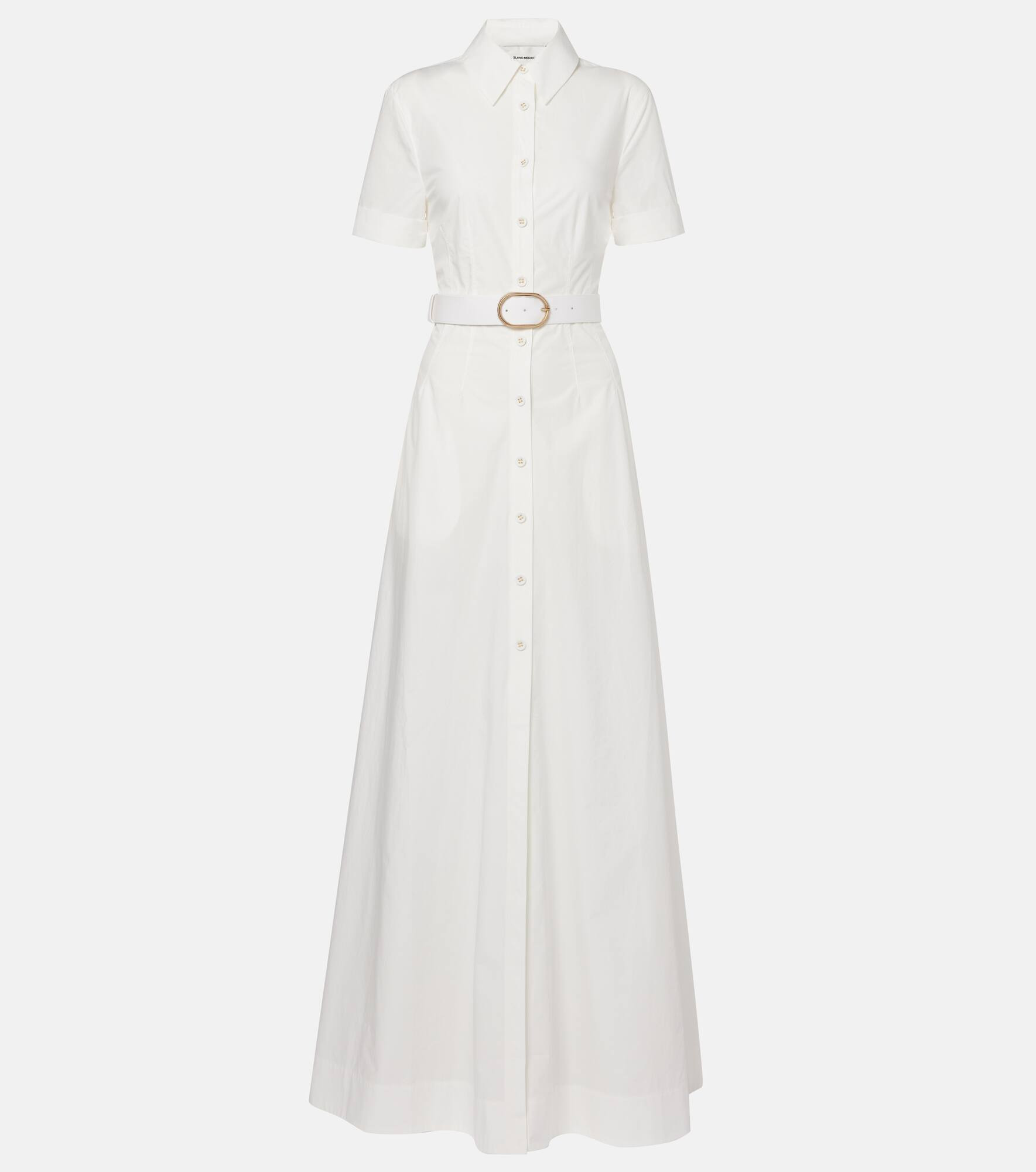 This shirt dress from Roland Mouret is made from crisp cotton poplin and cut to a longline, shirt silhouette. The short-sleeve style comes with a detachable belt to accentuate the waist. Product Details - Material: 100% cotton - Care instructions: dry clean - Made in China - Designer color name: White - Item color: white - Closure: partially buttoned front - Collar: classic (Straight point) - Pockets: side slit pockets - Detachable belt - Item number: P01060416 Size & Fit - Fits small to size - we recommend trying one size larger - Cinched waist - Non-stretchy fabric - The model seen in the picture is 178cm-5'10" and wearing a size UK 8