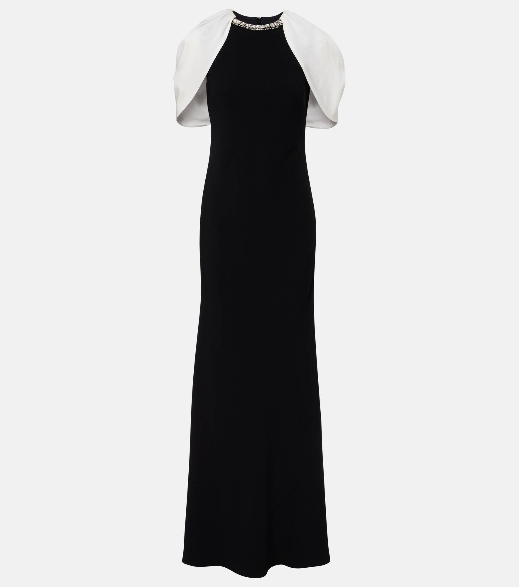 Roland Mouret has made a name for itself through a black tie-ready aesthetic and an expert use of draping. Made from satin crepe, this gown is characterized by its contrasting cape detail and embellished neckline. Product Details - Material: 75% acetate, 25% polyester - Care instructions: dry clean - Made in China - Designer color name: Monochrome - Item color: black - Material II: 75% acetate, 25% polyester - Lining: 100% polyester - Lining II: 100% polyamide - Closure: concealed zipper, zipped back, hook-fastening back - Item number: P01080491 Size & Fit - True to size - Fitted - Non-stretchy fabric - The model seen in the picture is 178cm-5'10" and wearing a size UK 6