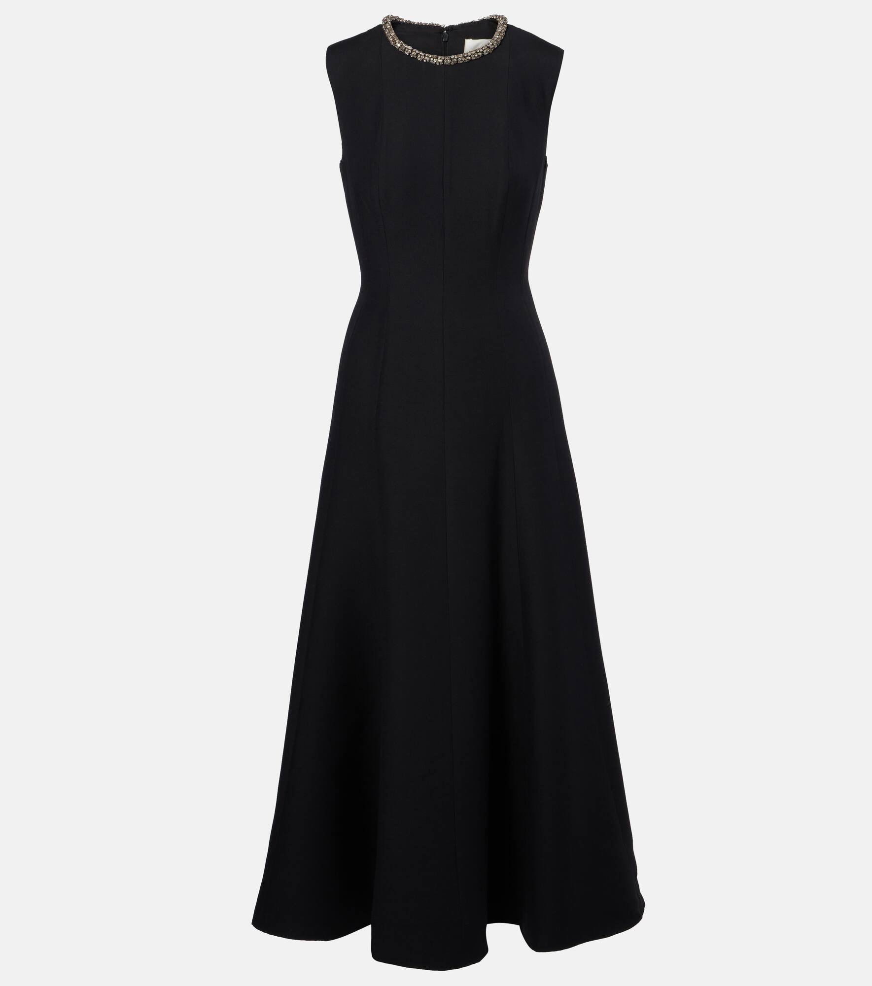 Embellished wool and silk midi dress