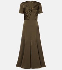 Gathered crêpe satin midi dress