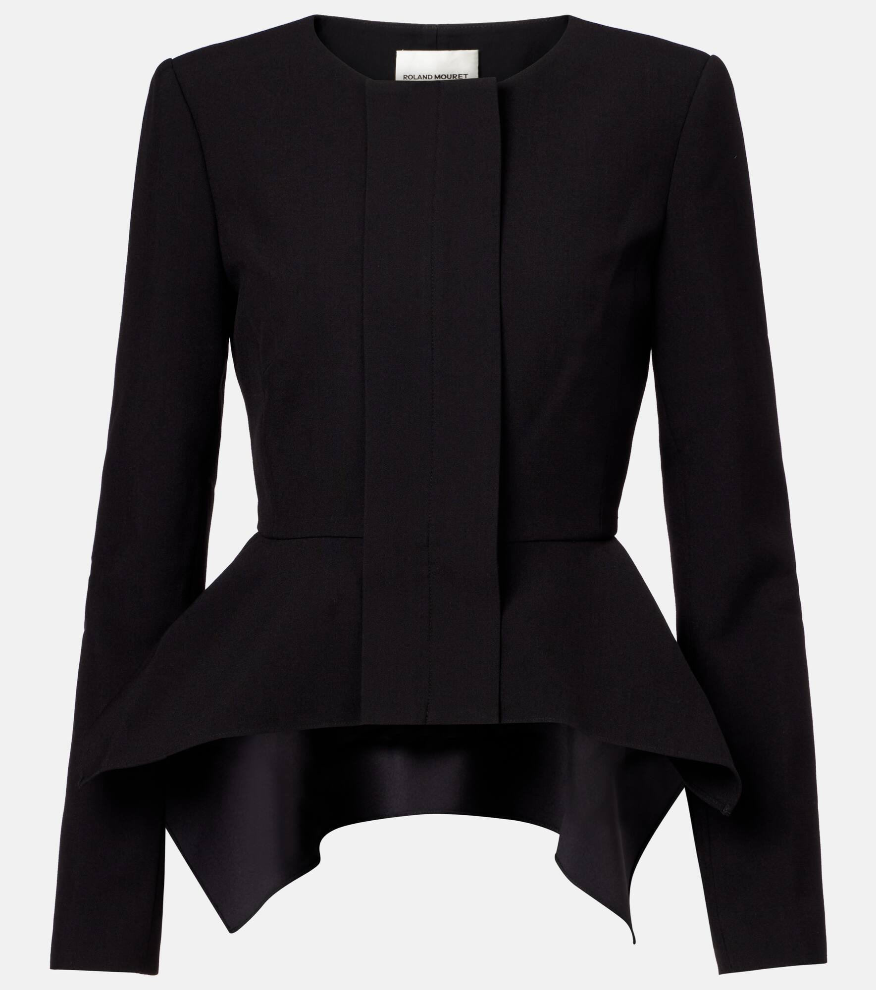 Embrace Roland Mouret's approach to tailoring with this jacket. The design is made from crepe fabric with a refined peplum silhouette and padded shoulders for added structure. Product Details - Material: 86% polyester, 10% viscose, 4% elastane - Care instructions: dry clean - Made in China - Designer color name: Black - Item color: black - Lining: 100% polyester - Closure: concealed zipper - Item number: P01060446 Size & Fit - True to size - Shoulder pad inserts - Cinched waist - Stretchy fabric - Falls to the hip - The model seen in the picture is 178cm-5'10" and wearing a size UK 8