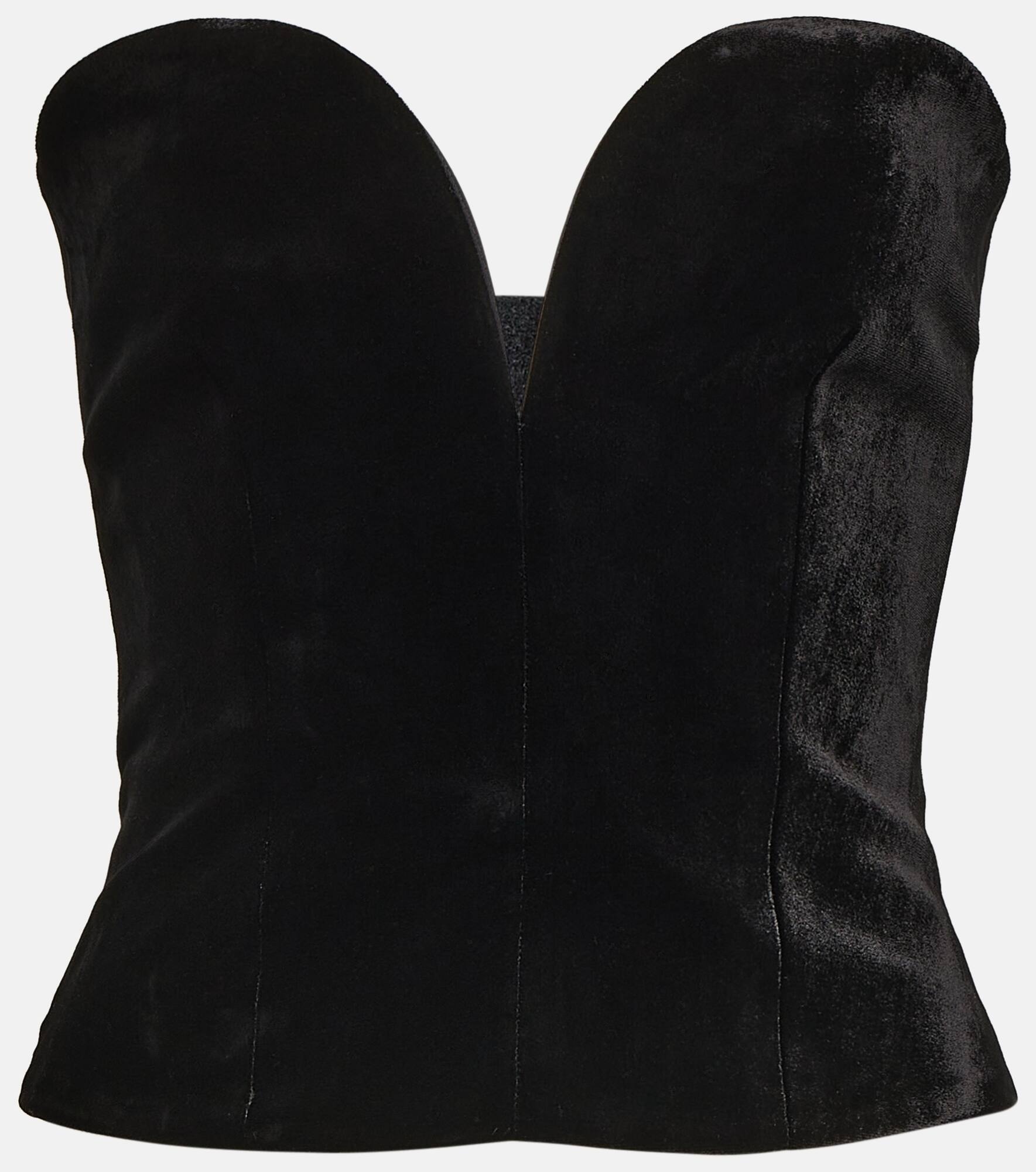 Product Details - Material: 77% viscose, 20% silk, 3% elastane - Closure: zipped back - Adjustable inner tabs at the waist - Care instructions: dry clean - Made in China - Designer color name: Black - Lining: 97% polyester, 3% elastane - Lining II: 91% polyester, 9% elastane - Item number: P00889872 Size & Fit - True to size - Strapless - Internal laced corset for support - Fitted - Non-stretchy fabric - Cropped - The model seen in the picture is 178cm-5'10" and wearing a size UK 8