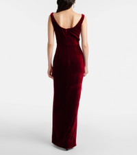 Roland Mouret has made a name for itself through a black tie-ready aesthetic and an expert use of draping. This gown is crafted from soft velvet, and the sculptural silhouette is finished with an elegant front slit. Product Details - Material: 77% viscose, 21% silk, 2% elastane - Care instructions: dry clean - Made in China - Designer color name: Dark Red - Item color: red - Lining: 100% polyester - Closure: concealed zipped back - Long vent - Item number: P01104671 Size & Fit - True to size - Fitted - Non-stretchy fabric - The model seen in the picture is 178cm-5'10" and wearing a size UK 6