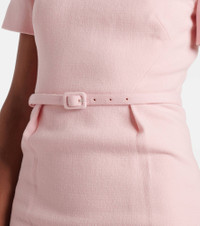 Product Details - Material: 100% wool - Care instructions: dry clean - Made in China - Designer color name: Pink - Lining: 100% polyester - Closure: concealed zipper - Detachable belt - Item number: P00969088 Size & Fit - True to size - Shoulder pad inserts - Cinched waist - Non-stretchy fabric - slit length 36cm-14" - The model seen in the picture is 178cm-5'10" and wearing a size UK 8
