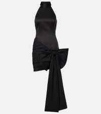 Fill the gaps in your going-out wardrobe with unique and glamorous styles from Rotate. Crafted from structured satin, this minidress features a charming halter neck silhouette complete with an oversized bow detail that drapes down the leg. Product Details - Material: 100% polyester (recycled) - Care instructions: hand wash - Made in China - Designer color name: Black - Item color: black - Lining: 100% polyester - Closure: zipped side - Fully lined - Item number: P01086861 Size & Fit - True to size - Close fit at the hips - Low back - Fitted - Non-stretchy fabric - The model seen in the picture is 178cm-5'10" and wearing a size DE 34