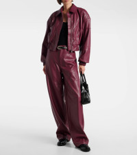 This Rotate bomber jacket is crafted from faux leather, bringing a bold attitude to your look. Its paneled design comes with a concealed button closure, and the elasticated hem and cuffs add a practical finish to the cropped silhouette. Product Details - Material: 100% polyester (recycled) - Care instructions: dry clean - Made in China - Designer color name: Zinfandel - Item color: burgundy - Coating: 100% polyurethane - Lining: 52% polyester, 48% viscose - Cuff: elasticated - Hem: elasticated - Pockets: buttoned pockets - Closure: concealed closure, zipper, snap-button fastenings - Item number: P01086863 Size & Fit - True to size - Dropped shoulders - Designed for a loose fit - Elasticated hem - Non-stretchy fabric - Slightly cropped - The model seen in the picture is 178cm-5'10" and wearing a size DE 34