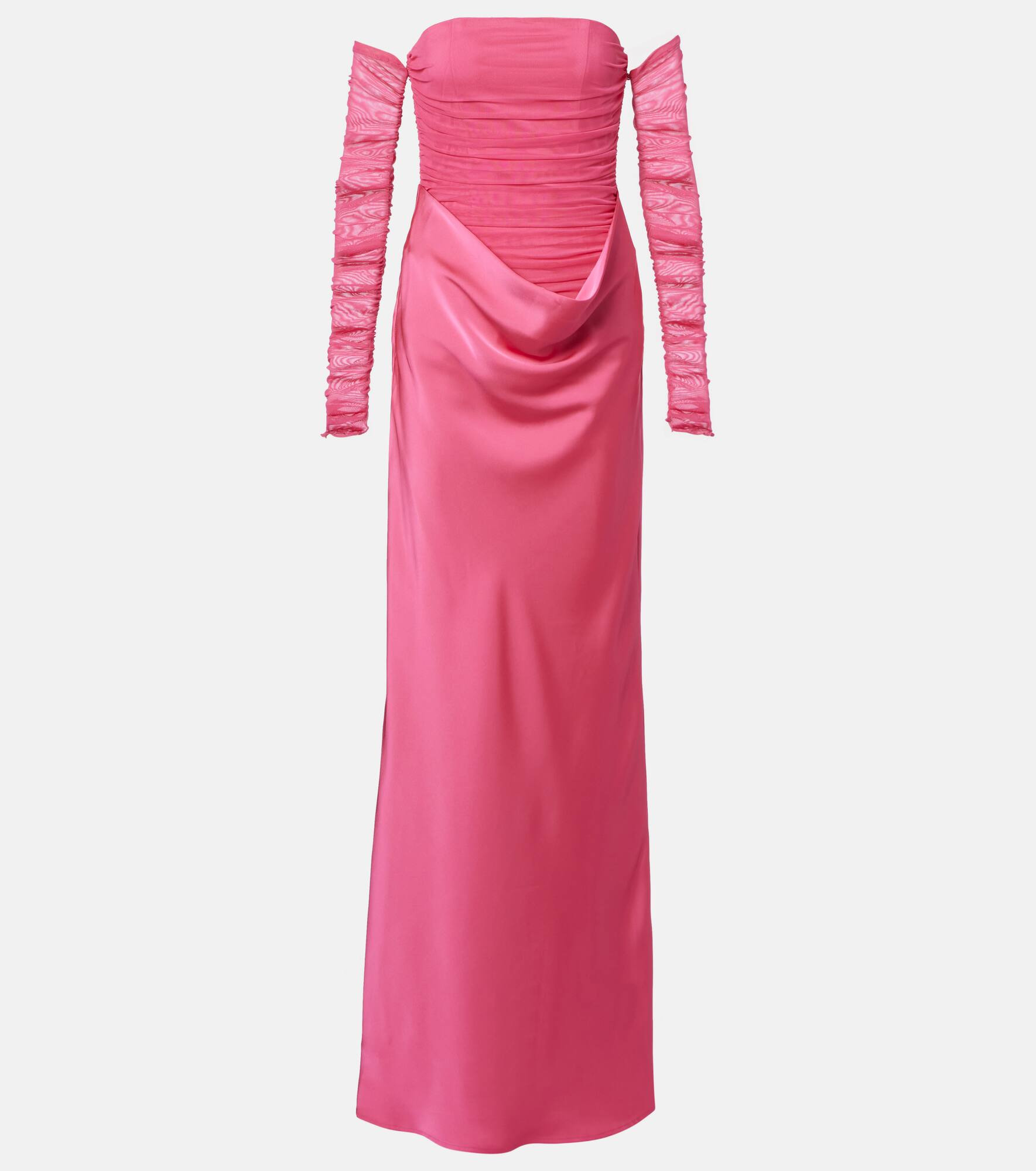 Fill the gaps in your going-out wardrobe with unique and glamorous styles from Rotate. This striking gown is shaped with a sculpting ruched bodice, exquisite drapery at the waistline, and removable sleeves. Product Details - Material: 100% polyester - Care instructions: hand wash - Made in China - Designer color name: Hot Pink - Item color: pink - Lining: 95% polyester, 5% elastane - Closure: concealed zipped back - Item number: P01113113 Size & Fit - True to size - Strapless - Fitted - Partly stretchy fabric - The model seen in the picture is 178cm-5'10" and wearing a size DE 34