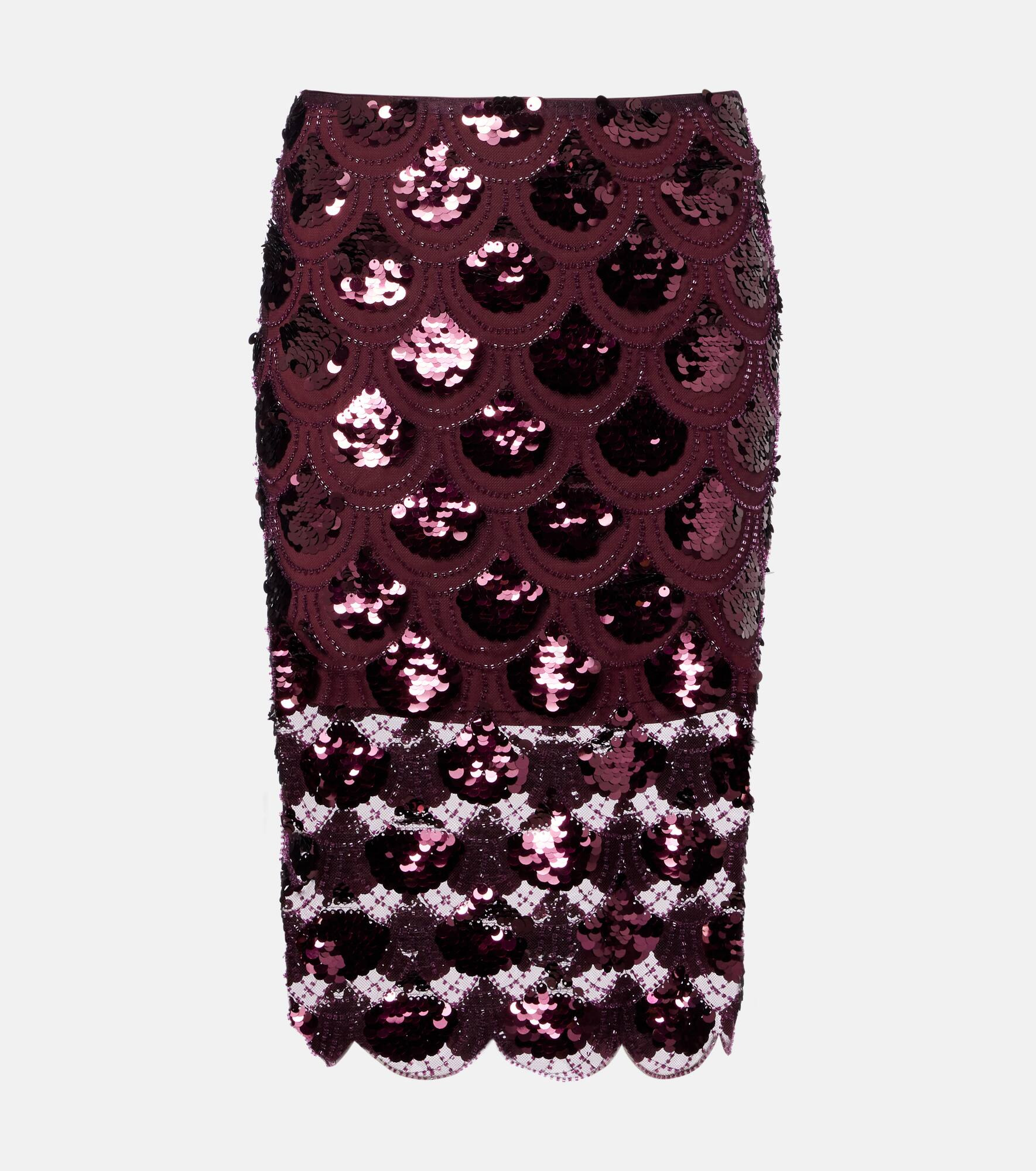 Embellished mesh midi skirt