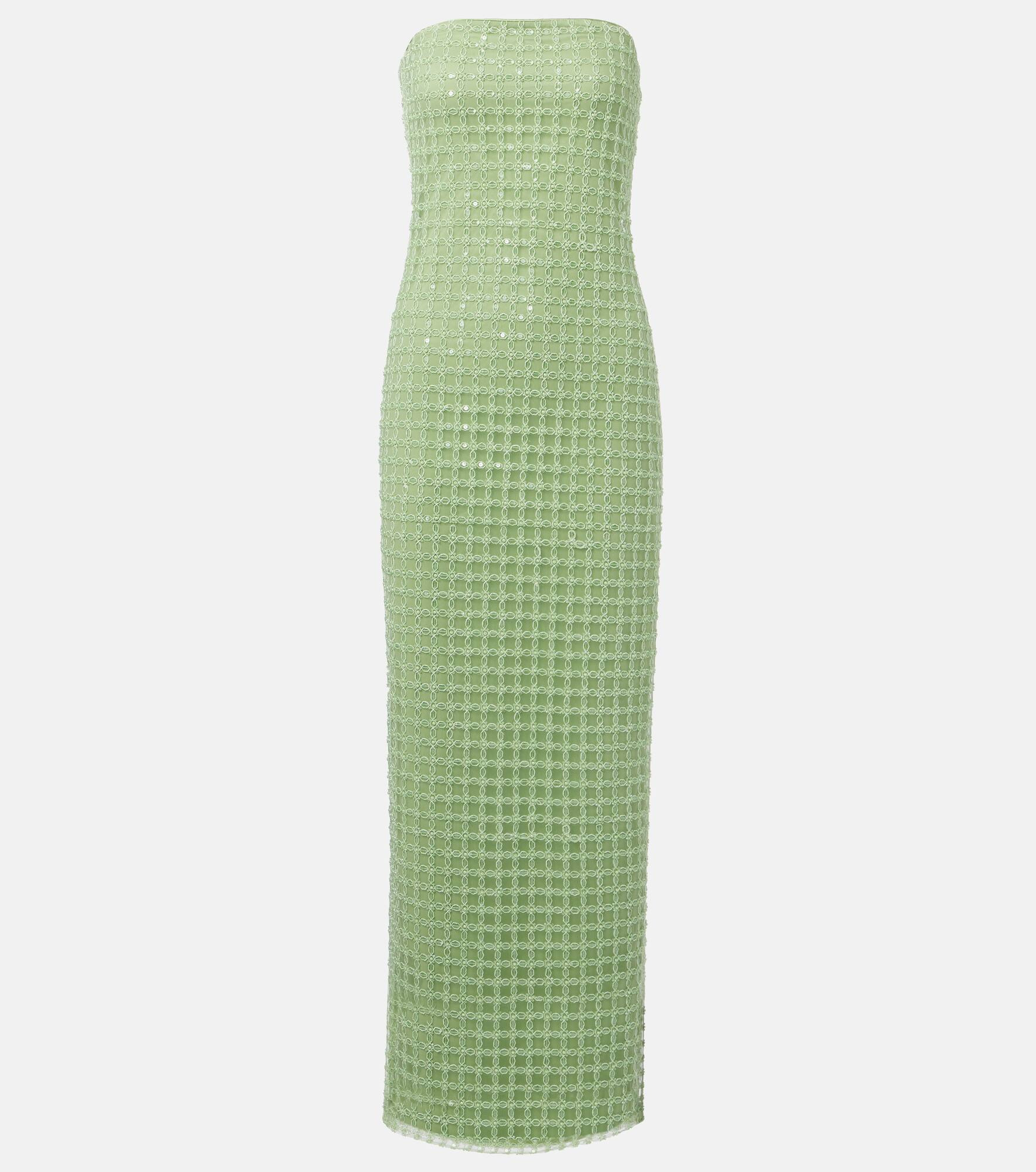 Fill the gaps in your going-out wardrobe with unique and glamorous styles from Rotate. This gown comes in a strapless silhouette, embellished with dazzling sequins arranged in a checked pattern. Product Details - Material: 100% polyester - Care instructions: hand wash - Made in China - Designer color name: Fair Green - Item color: green - Lining: 96% polyester, 4% elastane - Item number: P01049618 Size & Fit - True to size - Strapless - Fitted - Non-stretchy fabric - slit length 57.0cm-22.5" - The model seen in the picture is 178cm-5'10" and wearing a size DE 34