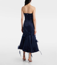 Fill the gaps in your going-out wardrobe with unique and glamorous styles from Rotate. Made from lustrous satin, this strapless midi dress features a classic A-line silhouette and vines of tulle floral-appliques. Product Details - Material: 100% polyester (recycled) - Care instructions: dry clean - Made in China - Designer color name: Sky Captain - Item color: blue - Hardware color: silver - Lining: 100% polyester - Material II: 95% polyester, 5% elastane - Closure: concealed zipped back, hook-fastening back - Item number: P01113122 Size & Fit - True to size - Strapless - Fitted - Non-stretchy fabric - The model seen in the picture is 178cm-5'10" and wearing a size DE 34
