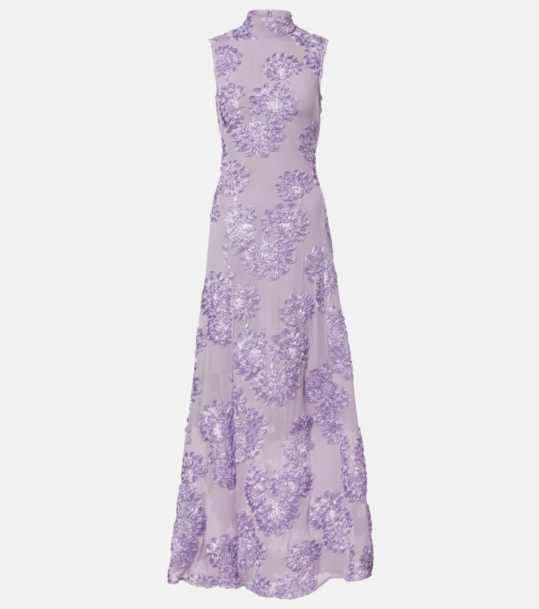 Fill the gaps in your going-out wardrobe with unique and glamorous styles from Rotate. This whimsical maxi dress features a sleeveless silhouette and is crafted from mesh with elegant all-over floral embroidery. Product Details - Material: 95% polyester (recycled), 5% elastane - Care instructions: hand wash - Made in China - Designer color name: Lavender Aura - Item color: purple - Insert: 100% polyester - Lining: 88% polyester, 12% elastane - Closure: invisible zipper - Item number: P01086859 Size & Fit - True to size - Semi-sheer - Cinched waist - Stretchy fabric - The model seen in the picture is 178cm-5'10" and wearing a size DE 34