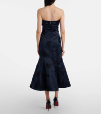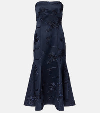 Fill the gaps in your going-out wardrobe with styles from Rotate. This strapless midi dress boasts a sculpted, mermaid silhouette with elegant all-over floral embroidery. Product Details - Material: 100% polyester (recycled) - Care instructions: dry clean - Made in China - Color: blue - Designer color name: Sky Captain (Dark Blue) - Item color: blue - Embroidery: 100% polyester - Lining: 97% viscose, 3% elastane - Closure: concealed zipped back - Item number: P01133444 Size & Fit - True to size - Strapless - Fitted - Non-stretchy fabric - The model seen in the picture is 178cm-5'10" and wearing a size DE 34