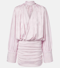 Fill the gaps in your going-out wardrobe with unique and glamorous styles from Rotate. This floral-patterned minidress boasts a voluminous, blouse-inspired bodice, gathered skirt, and a self-tie scarf detail. Product Details - Material: 97% polyester (recycled), 3% elastane - Care instructions: hand wash - Made in China - Color: purple - Designer color name: Orchid Ice - Item color: pink - Lining: 92% polyester, 8% elastane - Closure: concealed zipped back - Shoulder pads - Item number: P01133436 Size & Fit - True to size - Oversized shoulders - Shoulder pad inserts - Low back - Loose bodice, fitted skirt - Non-stretchy fabric - The model seen in the picture is 178cm-5'10" and wearing a size DE 34