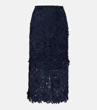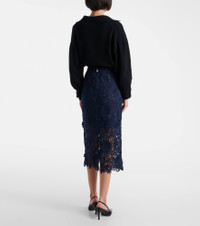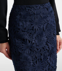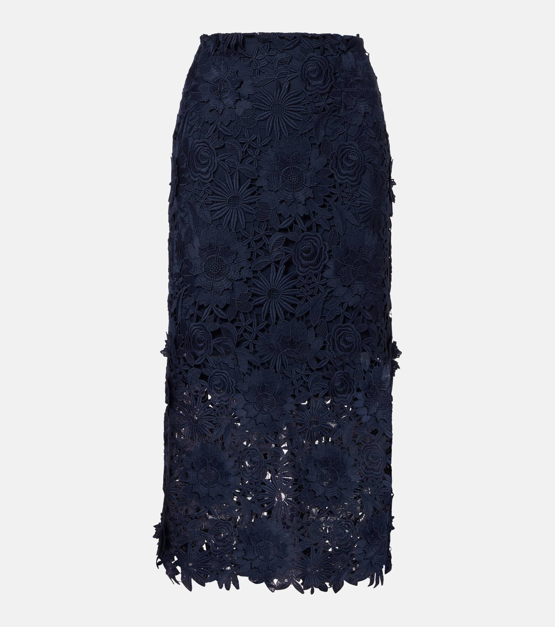 Fill the gaps in your going-out wardrobe with unique and glamorous styles from Rotate. This midi skirt is crafted from intricate Guipure lace and features a fitted silhouette with concealed zipper closure for a sleek finish. Product Details - Material: 100% polyester (recycled) - Care instructions: hand wash - Made in China - Designer color name: Navy Blazer - Item color: blue - Lining: 95% polyester (recycled), 5% elastane - Closure: concealed zipper, zipped back - Short vent - Item number: P01086845 Size & Fit - True to size - Non-stretchy fabric - slit length 31cm-12" - The model seen in the picture is 178cm-5'10" and wearing a size DE 34