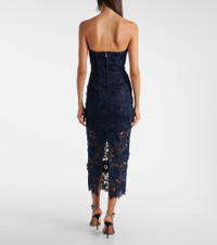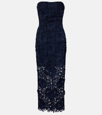 This midi dress by Rotate is an exquisite choice for your next event with its floral lace pattern. Its design features a sleeveless bodice and a semi-sheer lower part, and the back slit offers ease of movement. Product Details - Material: 100% polyester (recycled) - Care instructions: hand wash - Made in China - Designer color name: Navy Blazer - Item color: blue - Lining: 95% polyester (recycled), 5% elastane - Closure: concealed zipper, zipped back, hook fastening - Item number: P01086846 Size & Fit - True to size - Strapless - Fitted - Non-stretchy fabric - slit length 45cm-17.5" - The model seen in the picture is 178cm-5'10" and wearing a size DE 34