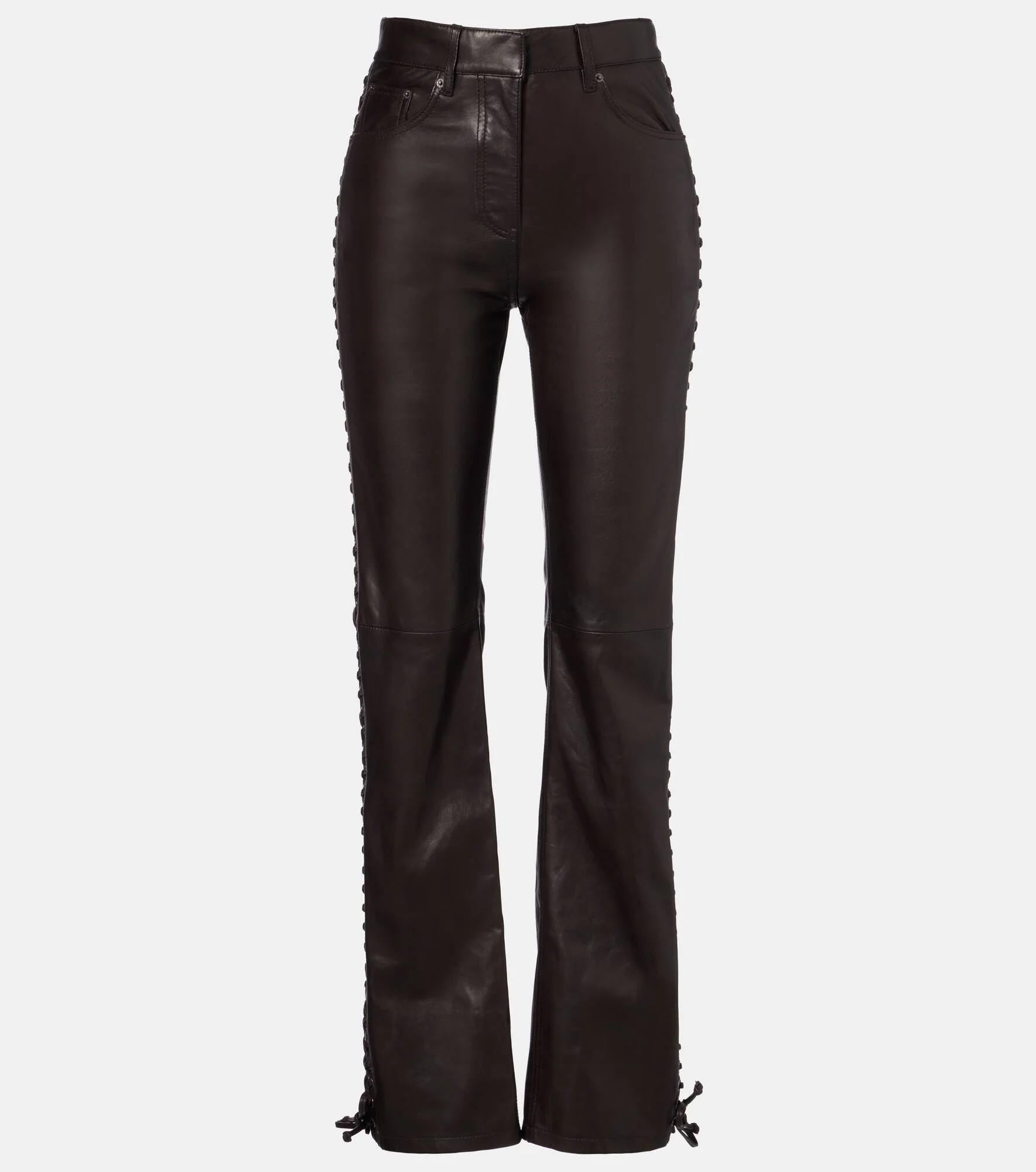 Fill the gaps in your going-out wardrobe with unique and glamorous styles from Rotate. These straight pants are crafted from soft nappa leather and finished with lacing details on the sides. Product Details - Material: 100% lamb leather - Care instructions: dry clean - Made in India - Designer color name: Mole' - Item color: brown - Lining: 100% polyester (recycled) - Closure: zipper, hook fastening - Pockets: five pockets - Belt loops - Contains non-textile parts of animal origin - Item number: P01113775 Size & Fit - True to size - Non-stretchy fabric - Straight leg - The model seen in the picture is 178cm-5'10" and wearing a size DE 34