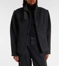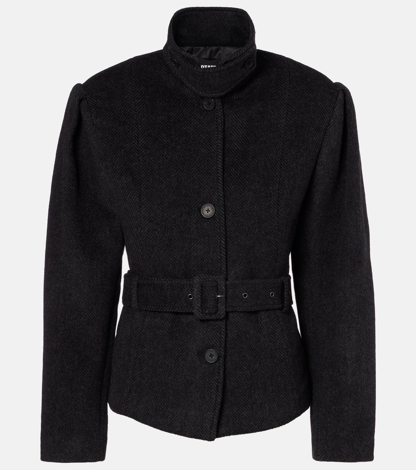 Fill the gaps in your going-out wardrobe with unique and glamorous styles from Rotate. The Marie herringbone jacket is crafted from a wool blend and is finished with a belted waist. Product Details - Material: 79% wool, 21% polyester - Care instructions: dry clean - Made in China - Designer color name: Gray Pinstripe - Item color: gray - Lining: 52% polyester, 48% viscose - Closure: buttoned front - Pockets: side slit pockets - Detachable belt - Detachable band - Item number: P01105588 Size & Fit - True to size - Shoulder pad inserts - Loose fit, comes with belt - Non-stretchy fabric - Falls to the hip - The model seen in the picture is 178cm-5'10" and wearing a size DE 34