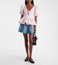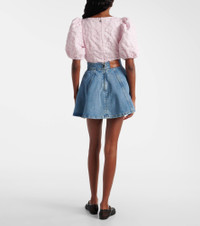 Fill the gaps in your going-out wardrobe with unique and glamorous styles from Rotate. This denim miniskirt features a pleated design and a washed finish that will take you back to the early 2000s. Product Details - Material: 100% cotton (organic) - Care instructions: machine wash at 40 degrees - Made in Turkey - Designer color name: Vintage Blue Denim - Item color: blue - Closure: zipped back - Item number: P01086837 Size & Fit - True to size - Non-stretchy fabric - High-waisted - The model seen in the picture is 178cm-5'10" and wearing a size DE 34