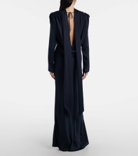 Fill the gaps in your going-out wardrobe with styles from Rotate. This gown is crafted from navy-hued satin and boasts long sleeves, a draped neckline, and a flowing scarf detail. Product Details - Material: 100% polyester (recycled) - Care instructions: hand wash - Made in China - Color: blue - Designer color name: Sky Captain (Dark Blue) - Item color: blue - Self-tie belt - Item number: P01133447 Size & Fit - True to size - Low back - Cinched waist - Non-stretchy fabric - The model seen in the picture is 178cm-5'10" and wearing a size DE 34