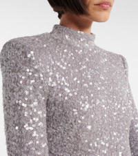 This Rotate midi dress showcases an asymmetric silhouette with a draped hem for a sculptural effect. Its design features a shimmering sequin embellishment and is finished with detachable shoulder pads for a structured look. Product Details - Material: 95% polyester (recycled), 5% elastane - Care instructions: dry clean - Made in China - Designer color name: Alloy (Light Gray) - Item color: gray - Material II: 100% polyester (recycled) - Lining: 88% polyester, 12% elastane - Closure: zipped back - Detachable shoulder pads - Item number: P01086857 Size & Fit - True to size - Shoulder pad inserts - Fitted - Partly stretchy fabric - The model seen in the picture is 178cm-5'10" and wearing a size DE 34