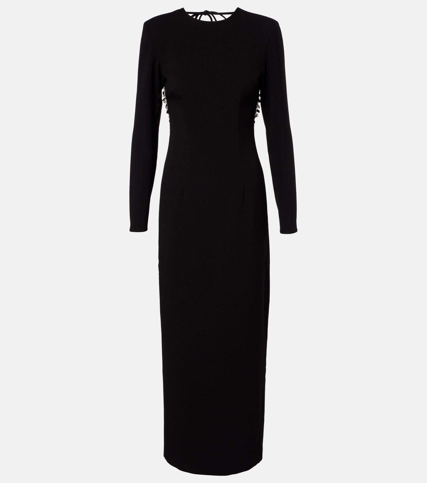 Fill the gaps in your going-out wardrobe with unique and glamorous styles from Rotate. This dress is cut from crepe to a maxi-length silhouette, complemented by an open back and sequin detailing. Product Details - Material: 96% polyester, 4% elastane - Care instructions: dry clean - Made in China - Designer color name: Black - Item color: black, silver - Lining: 95% polyester, 5% elastane - Self-tie back - Sleeves: long-sleeved - Closure: concealed zipped back - Detachable shoulder pads - Item number: P01113761 Size & Fit - True to size - Shoulder pad inserts - Low back - Fitted - Non-stretchy fabric - slit length 50cm-19.5" - The model seen in the picture is 178cm-5'10" and wearing a size DE 34