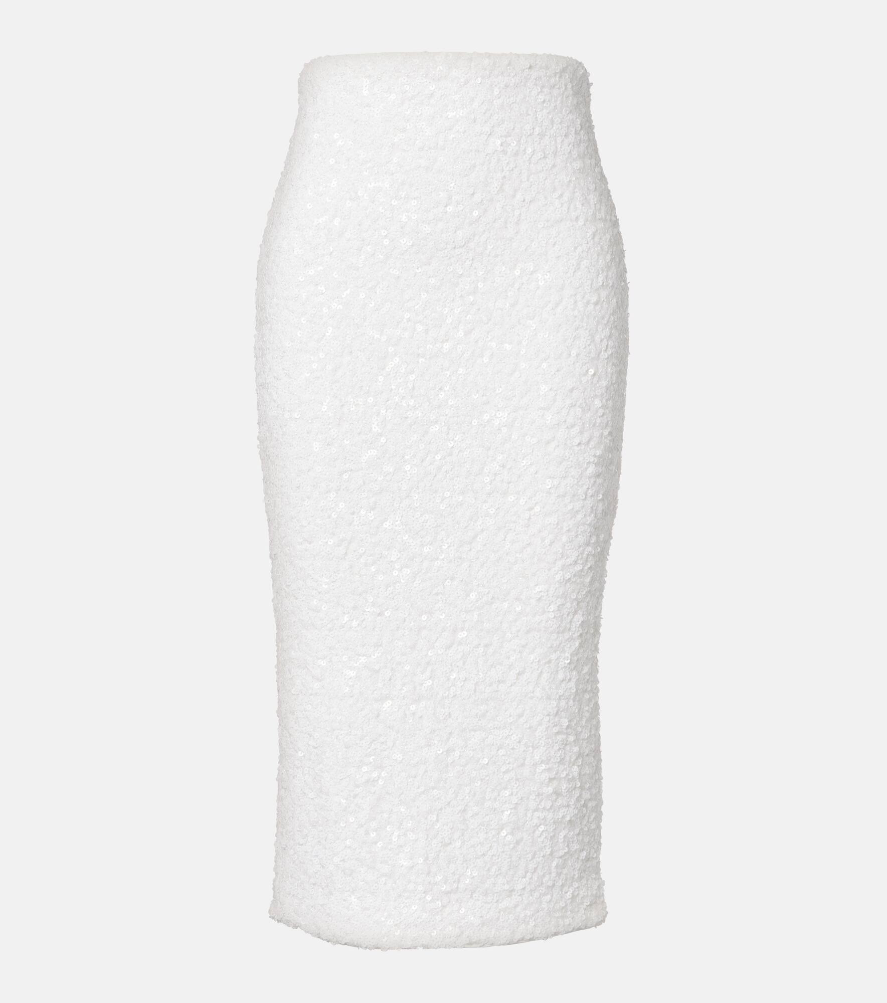 Fill the gaps in your going-out wardrobe with unique and glamorous styles from Rotate. This skirt features a sleek pencil silhouette and is adorned with shimmering sequins. Product Details - Material: 95% polyester, 5% elastane - Care instructions: dry clean - Made in China - Designer color name: Snow White - Item color: white - Lining: 100% polyester - Long vent - Closure: concealed zipped back - Item number: P01130830 Size & Fit - True to size - Slightly stretchy fabric - slit length 31cm-12" - The model seen in the picture is 178cm-5'10" and wearing a size DE 34
