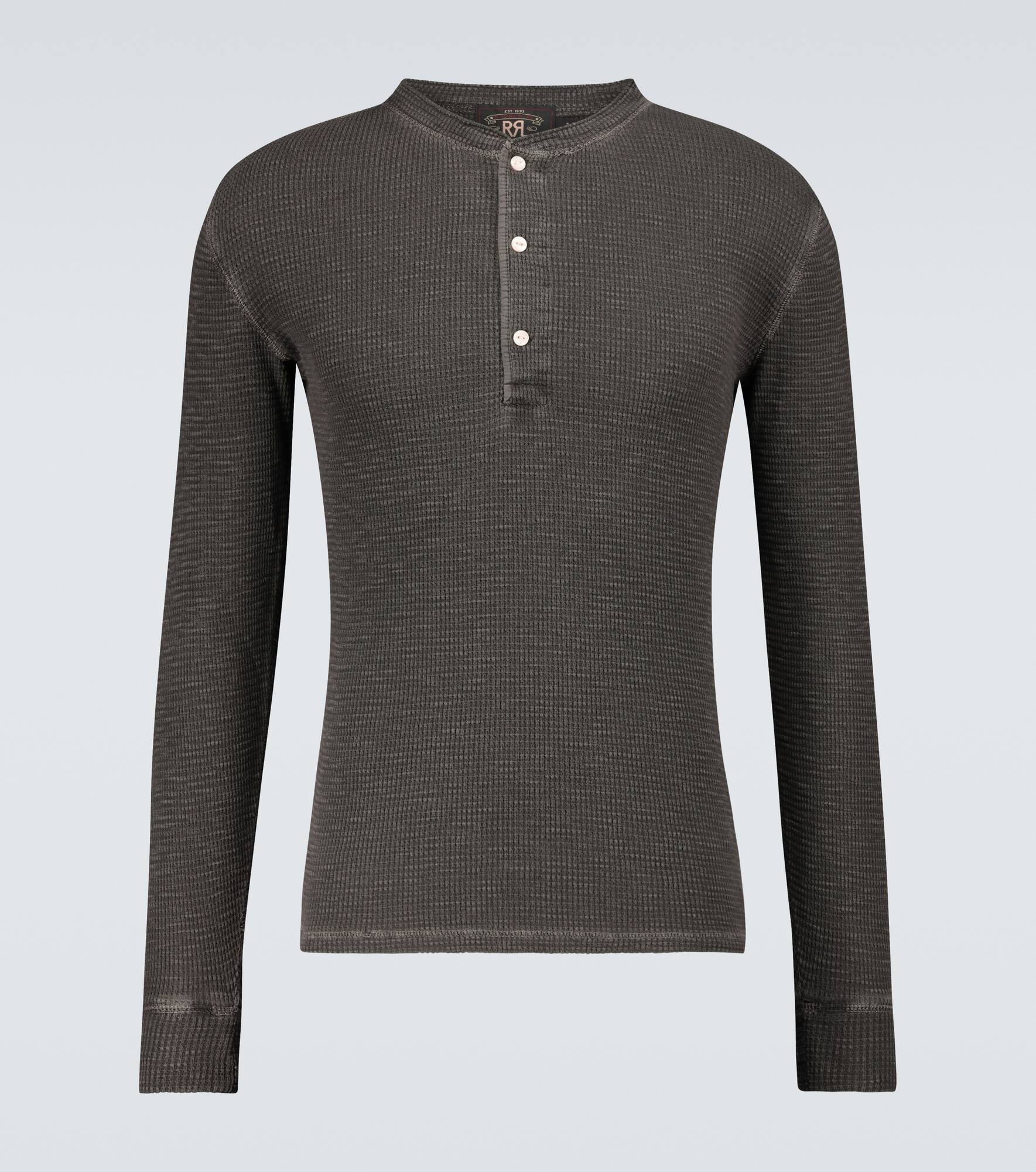 Crafted from 100% cotton in a waffle pattern, this faded black Henley T-shirt from RRL has a four-button placket and slim fit. - material: 100% cotton - care instructions: machine wash - Made in the UK - Designer colour name: Faded Black Canvas