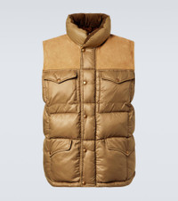Leather-trimmed ripstop puffer vest