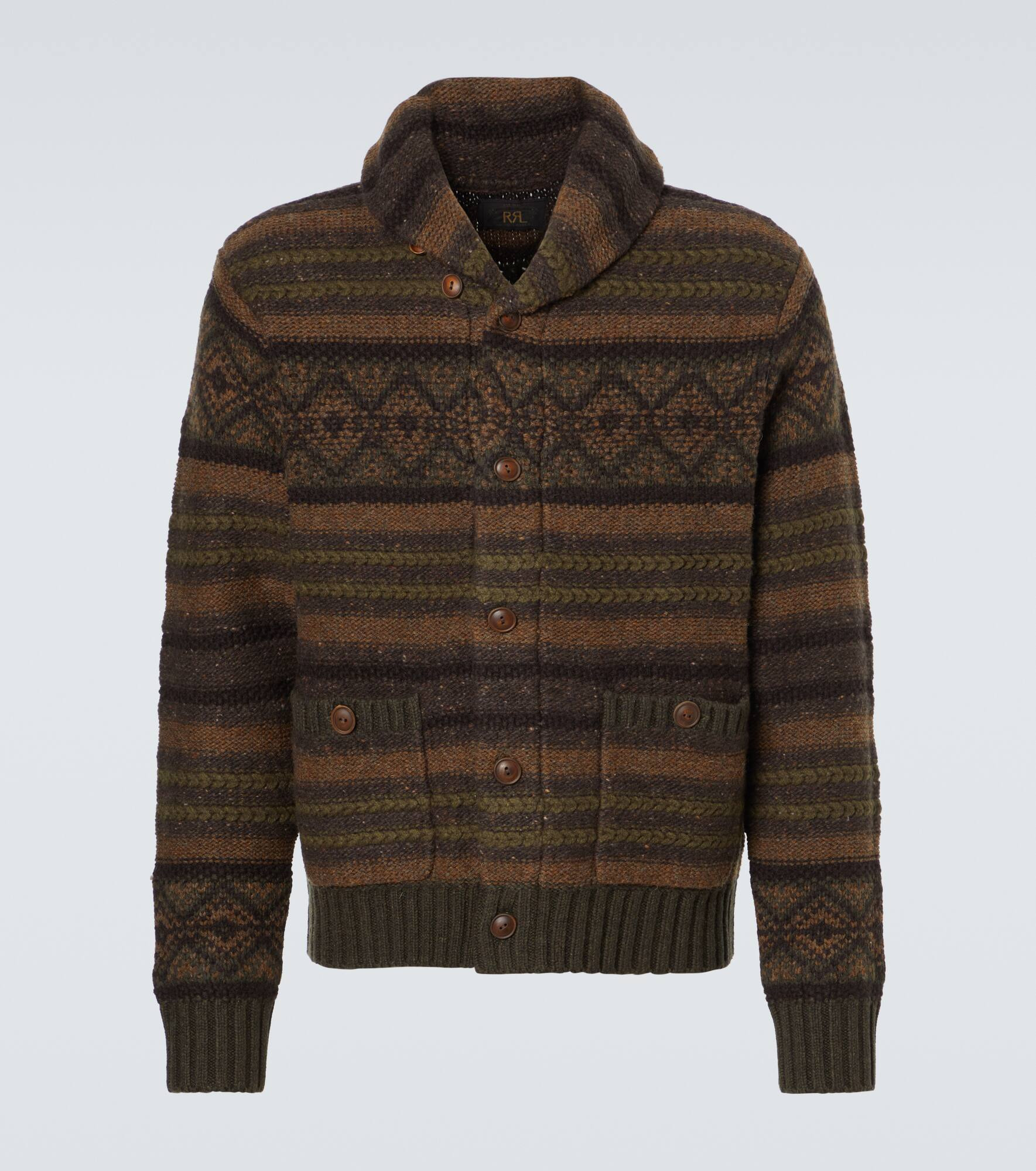 Inspired by the heritage of the American West, Ralph Lauren's RRL label creates vintage-inspired designs for every day. This cardigan showcases a wool and cotton construction, reimagining equestrian blankets from the '40s through a combination of stripes and Fair Isle detailing. Product Details - Material: 87% wool, 13% cotton - Care instructions: hand wash cold - Made in China - Designer color name: Brown Olive Multi - Item color: brown, green - Contains non-textile parts of animal origin - Collar: shawl neck - Pockets: buttoned pockets - Closure: buttoned front - Item number: P01086698 Size & Fit - True to size - Straight fit - Slightly stretchy fabric - Falls to the hip - Height of model is 192cm-75.5" and wears a size L