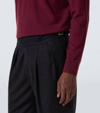 Rooted in Neapolitan tailoring tradition, Rubinacci is celebrated for its refined craftsmanship, relaxed elegance, and impeccable attention to detail. Crafted from virgin wool flannel, these tapered pants feature unfinished hems and adjustable tabs at the waist for a customizable fit. Product Details - Material: 100% virgin wool - Care instructions: dry clean - Made in Italy - Designer color name: Black - Item color: black - Lining: 100% cotton - Pockets: slant pockets, back pockets - Closure: zipper fastening, buckle fastening - Item number: P01066983 Size & Fit - True to size - Adjustable at the waist - Non-stretchy fabric - Straight leg - Unhemmed for tailoring - Height of model is 189cm-74.5" and wears a size 50