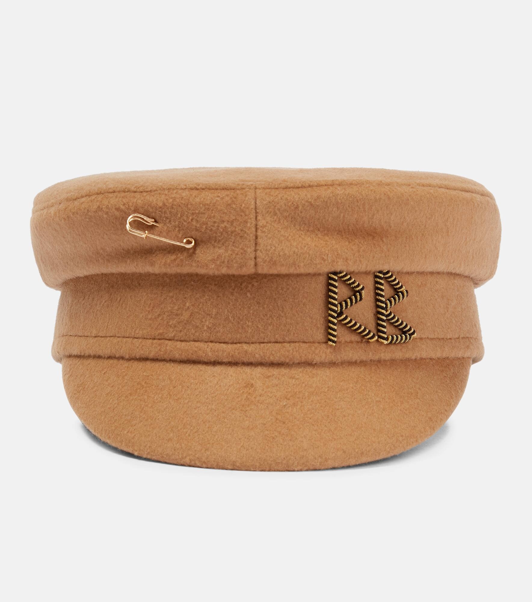 Embroidered wool baker boy hat