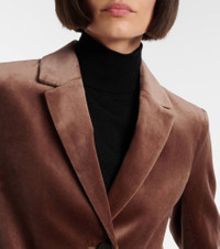 Favoring streamlined silhouettes and premium fabrics, 'S Max Mara conveys contemporary elegance. The Agata blazer is crafted from soft cotton velvet and features notched lapels. Product Details - Material: 100% cotton - Care instructions: dry clean - Made in Romania - Designer color name: Golden Camel - Item color: brown - Lining: 100% cupro - Sleeve lining: 61% acetate, 39% viscose - Closure: buttoned front - Pockets: flap pockets - Contains non-textile parts of animal origin - Vent: single - Cuff: buttoned - Item number: P01094667 Size & Fit - True to size - Cinched waist - Non-stretchy fabric - Falls below the hip - The model seen in the picture is 178cm-5'10" and wearing a size DE 34
