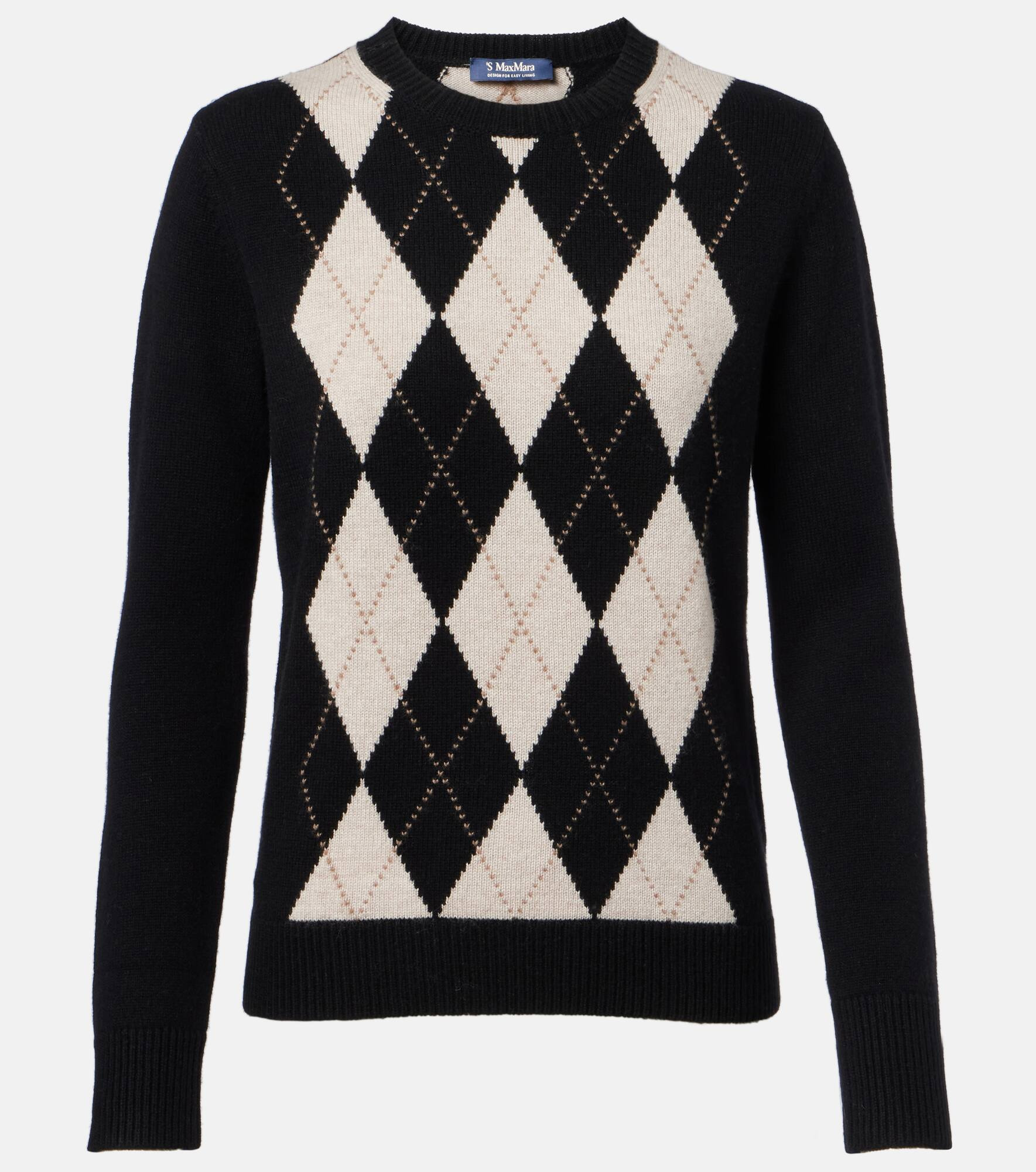 Favoring streamlined silhouettes and premium fabrics, 'S Max Mara conveys contemporary elegance. Knitted from soft wool and cashmere yarns, this classic crewneck sweater comes with an all-over argyle pattern. Product Details - Material: 80% wool, 20% cashmere - Care instructions: hand wash - Made in China - Designer color name: Argyle Nero - Item color: black - Collar: crewneck - Cuff: ribbed - Hem: ribbed - Item number: P01094698 Size & Fit - True to size - Straight fit - Slightly stretchy fabric - Falls to the hip - The model seen in the picture is 178cm-5'10" and wearing a size XS
